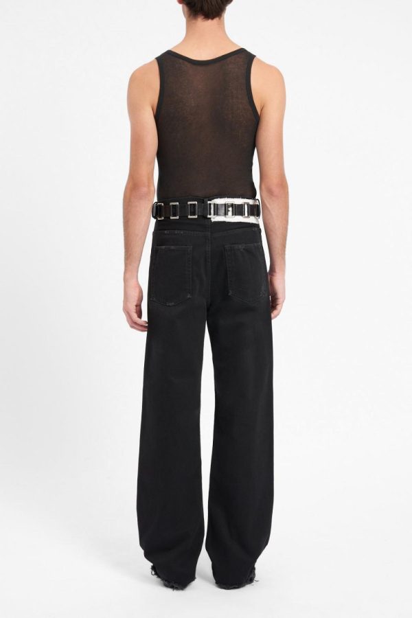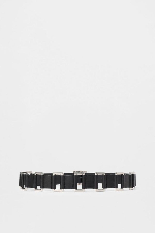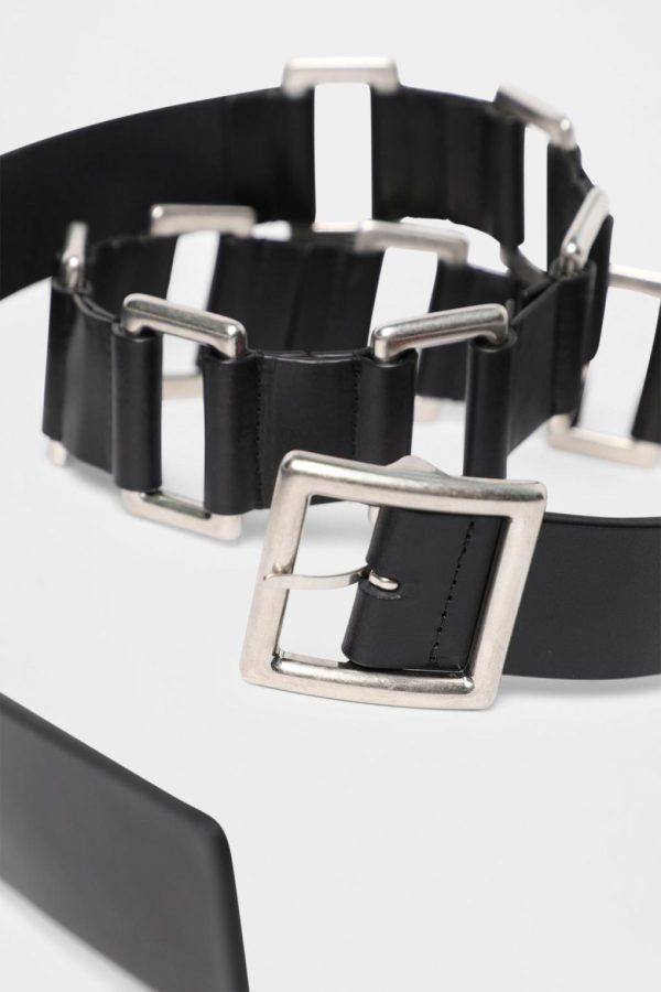Imir Belt – Black – Rectangular Metal Rings – Adjustable Metal Buckle – 100% Calfskin – Made in Italy