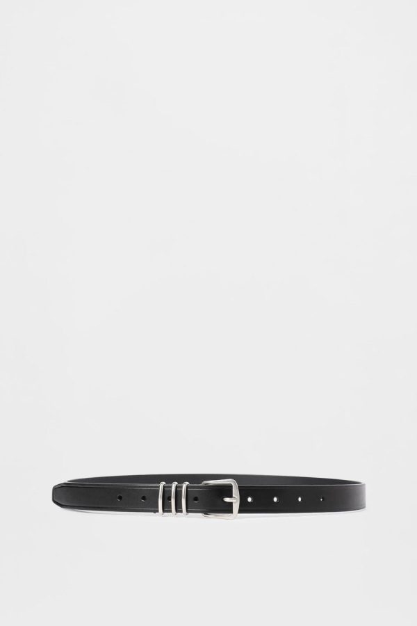 Nesa Belt – Black – Embossed Stripes – Triple Metal Belt Holes – Adjustable Metal Buckle – 100% Bovine Leather – Made in Italy