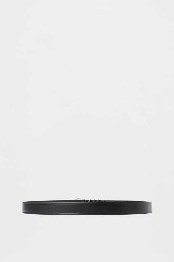 Nesa Belt – Black – Embossed Stripes – Triple Metal Belt Holes – Adjustable Metal Buckle – 100% Bovine Leather – Made in Italy