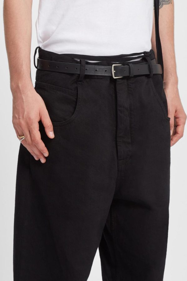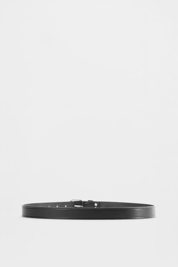 Willow Belt – Black – Oily Calfskin – Leather Strap With Embossed Stripes And Metal Rivets – Adjustable Metal Buckle – 100% Calf Leather – Made in Italy