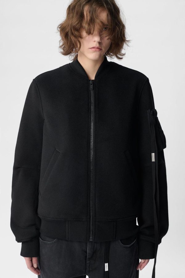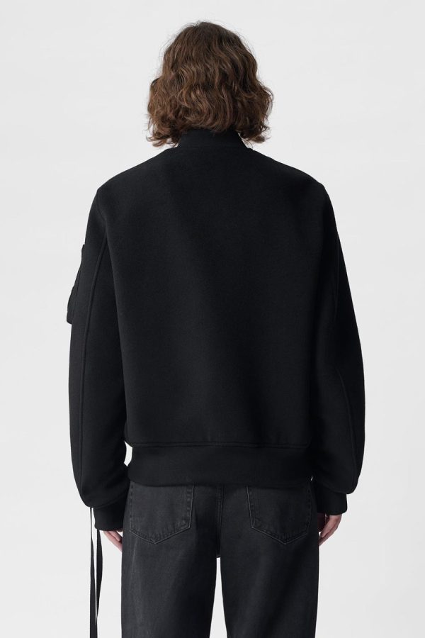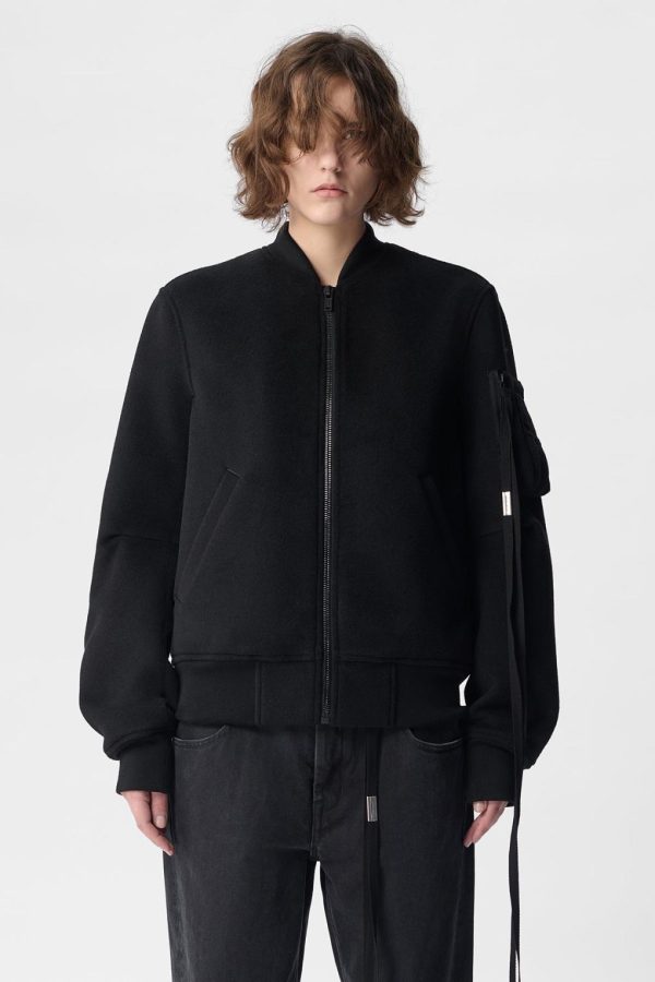 Barbara Standard Bomber – Black – Collar Zip Closure – Side Pockets – Zipped Pocket With Removable Signature Grosgrain Ribbon -Ribbed Hem And Cuffs – 95% Virgin Wool, 5% Wool Cachemire – Made in Italy