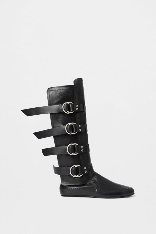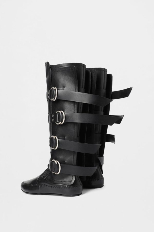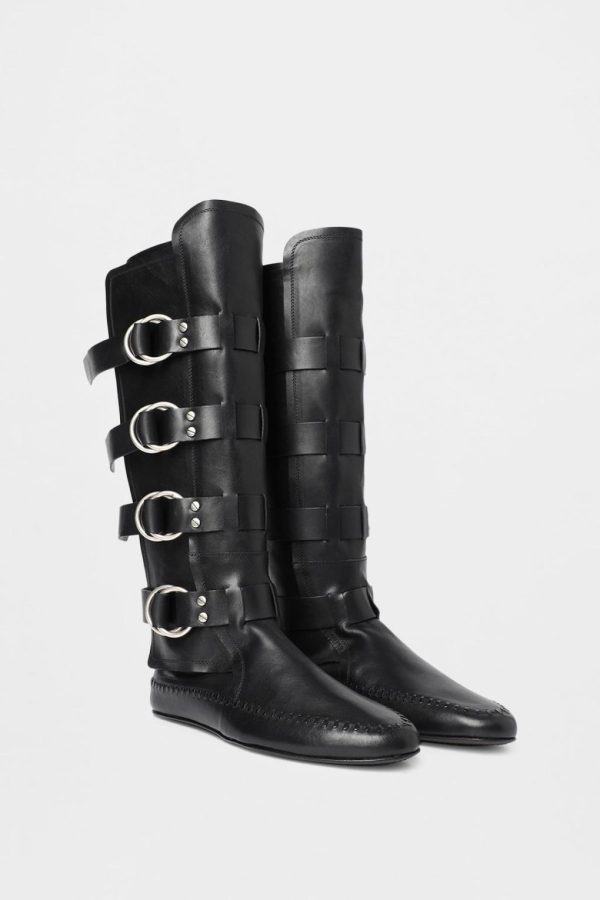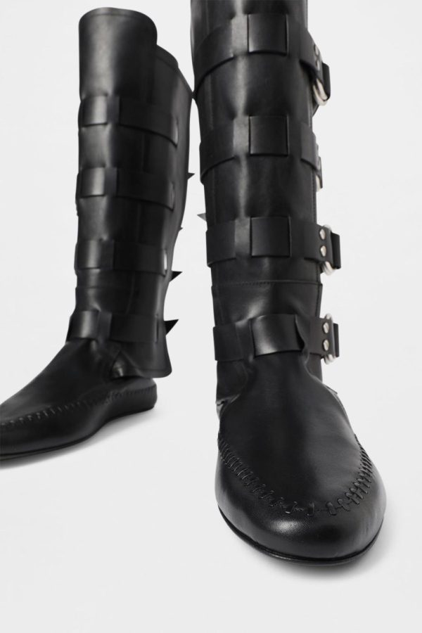 Siver Boots – Black – Leather Stitching Trimside Wrap – Buckled Ring Straps – Signature Rivets – Leather Sole – 100% Bovine Leather – Made in Italy
