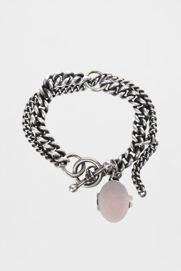 Odessa Photo Memory Bracelet – Antique Silver – Large And Medium Link Chains – Toggle Clasp Closure – Mirror Plaque – 100% Silver – Made in Italy