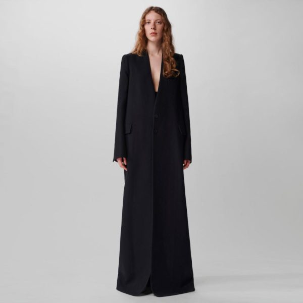 Women’s Aisha Long Standard Coat Brushed Wool – Black – Button closure – Pockets – 98% Virgin Wool 2% Elastan – Made In Italy