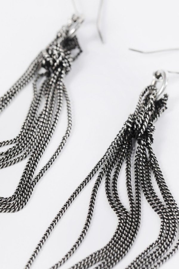 Wivi Knottassel Earrings – Silver- Fine pearls details- Chain details- 100% Silver- Made in Italy