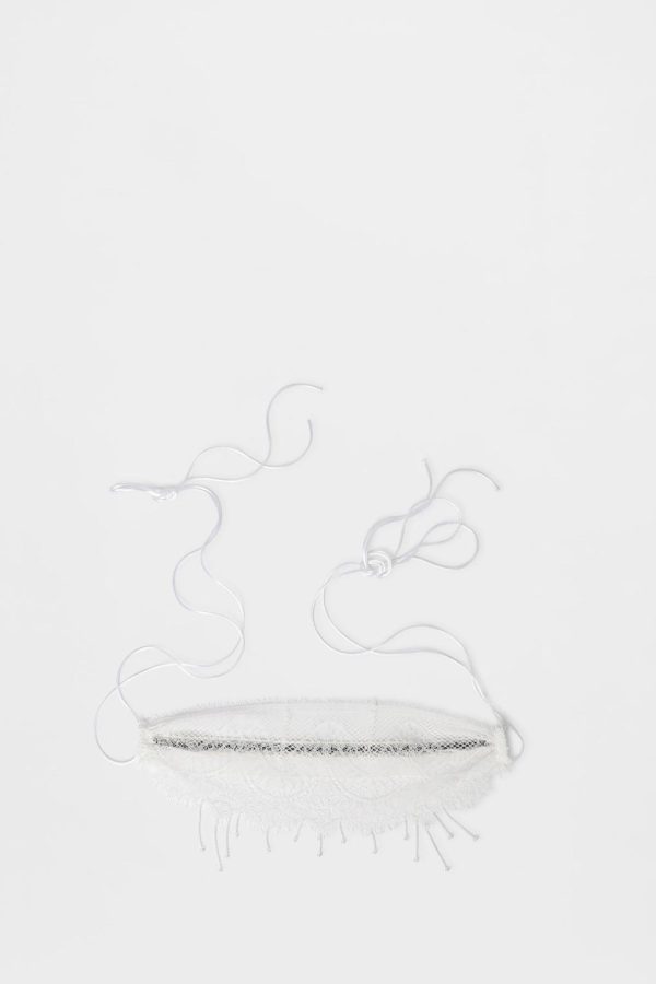 Klas Embroidered Lace Cap – Natural White – Nylon Cotton Lace – Lyrics Jacquard Lining- Self-Tie Straps – 60% Cotton, 40% Polyamide – Made in Italy