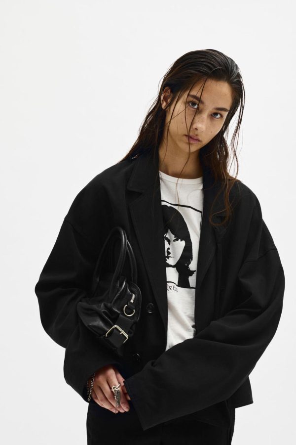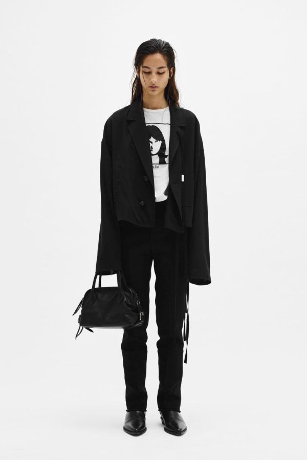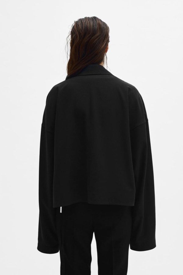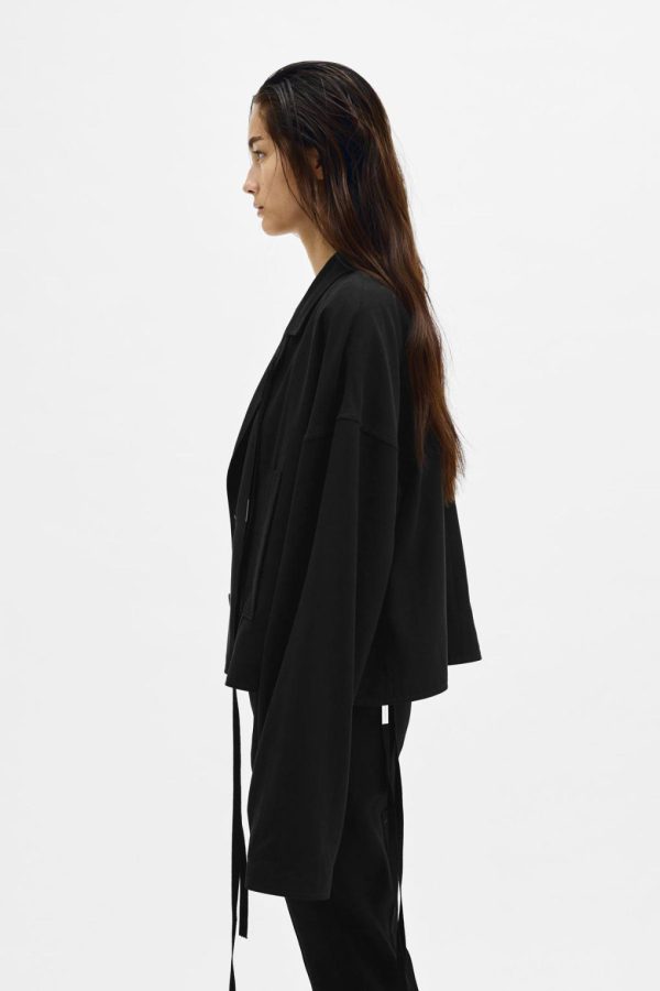 Ceres Cropped Light Jacket – Black – Notched Collar – Removable Signature Grosgrain Ribbon – Side Pockets – Cropped Hem – Boxy Fit – 100% Lyocell – Made in Italy