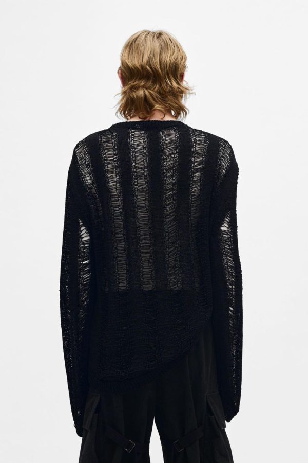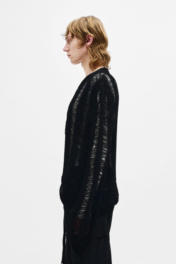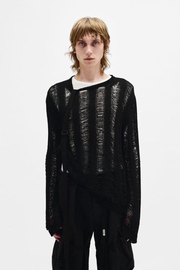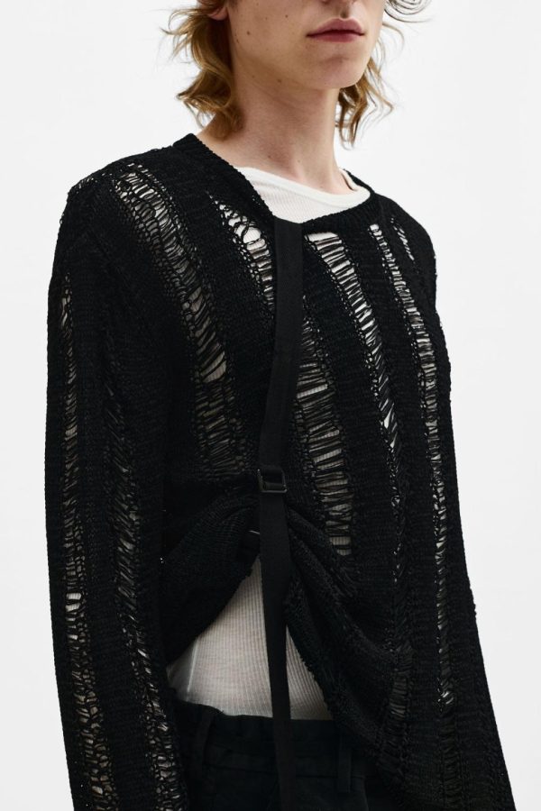 Balder ladder Stitch Oversize Sweater – Black – Ladder Stitch Knit – Boat Neck – Buckled Grosgrain Strap – Ribbed Hem And Cuffs – 60% Viscose, 40% Polyamide – Made in Italy