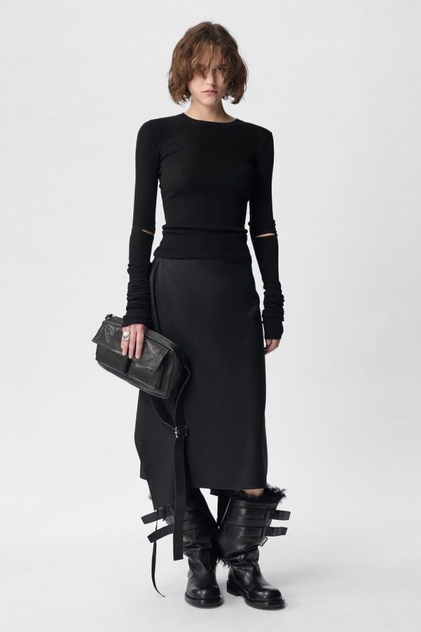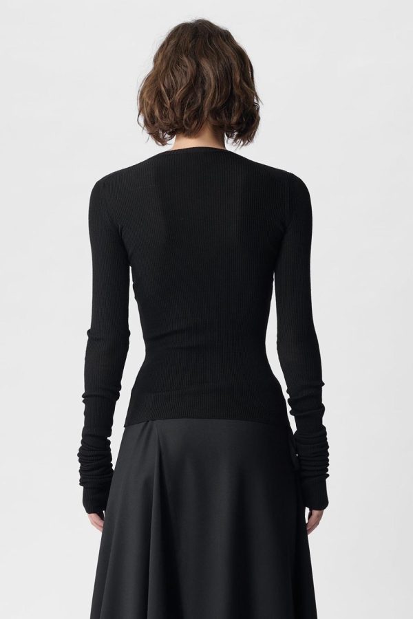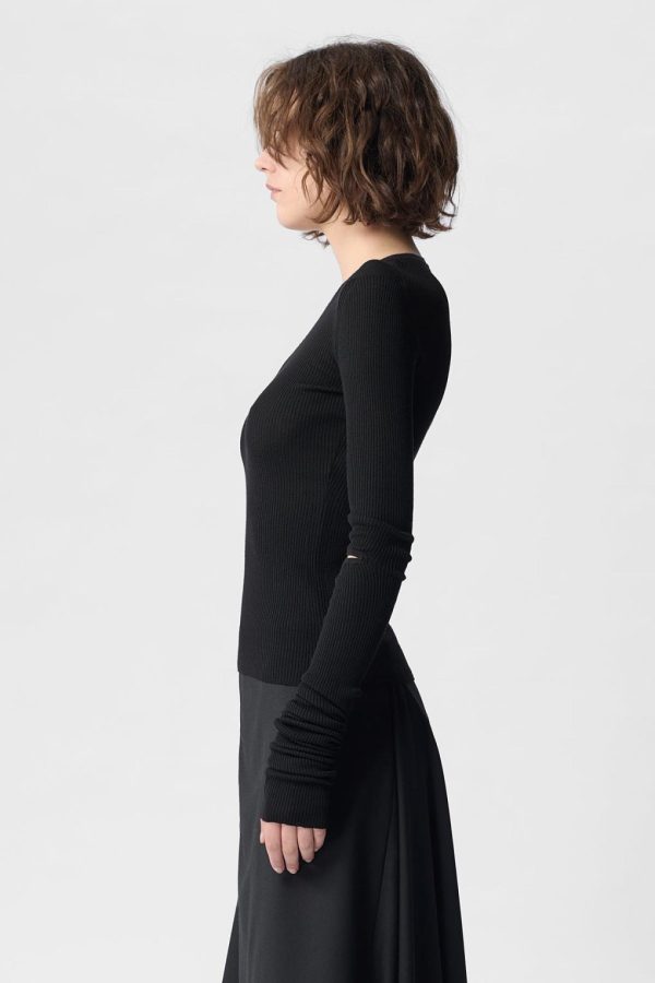 Lyell Sweater – Black – Supefine Merino Ribbed-Knit – Crewneck – Cut-out Sleeves – Slouched Cuffs -Fitted – 100% Merino Wool – Made in Italy