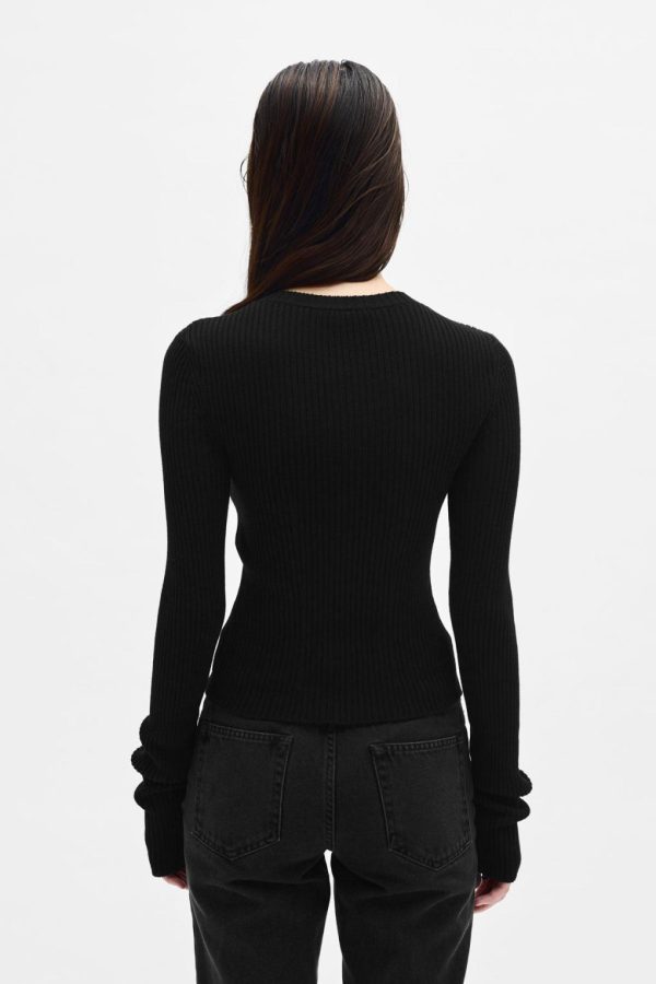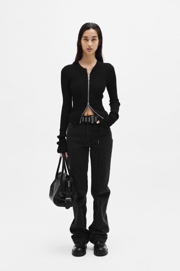 Terna Cropped Zip-Up Cardigan- Black – Cotton Cashmere Silk Ribbed-Knit – Crewneck – Zip Closure – Cropped Hem – Fitted – 50% Cotton, 30% Wool, 20% Silk – Made in Italy