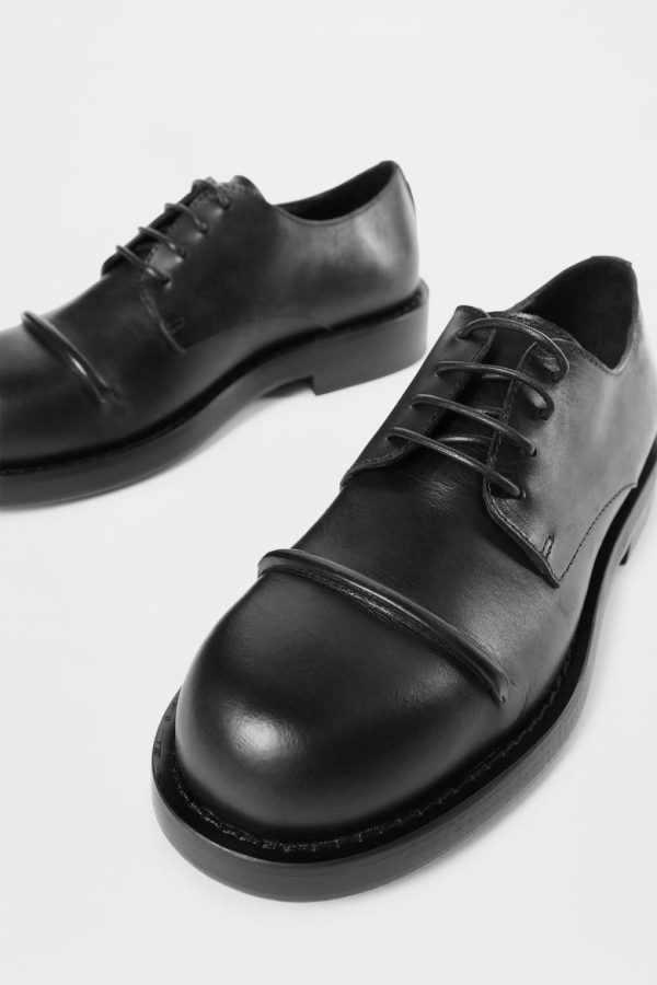 Ann Demeulemeester shoes embody the essence of luxury and comfort. The generously wide fit is a design choice aimed at ensuring a comfortable wear. For those who prefer a snugger fit, we recommend using an insole. Crafted from the highest quality leather, it is natural for the shoes to feel stiff initially. By wearing and walking in them, they will perfectly mold to the shape of your feet, offering unparalleled comfort.