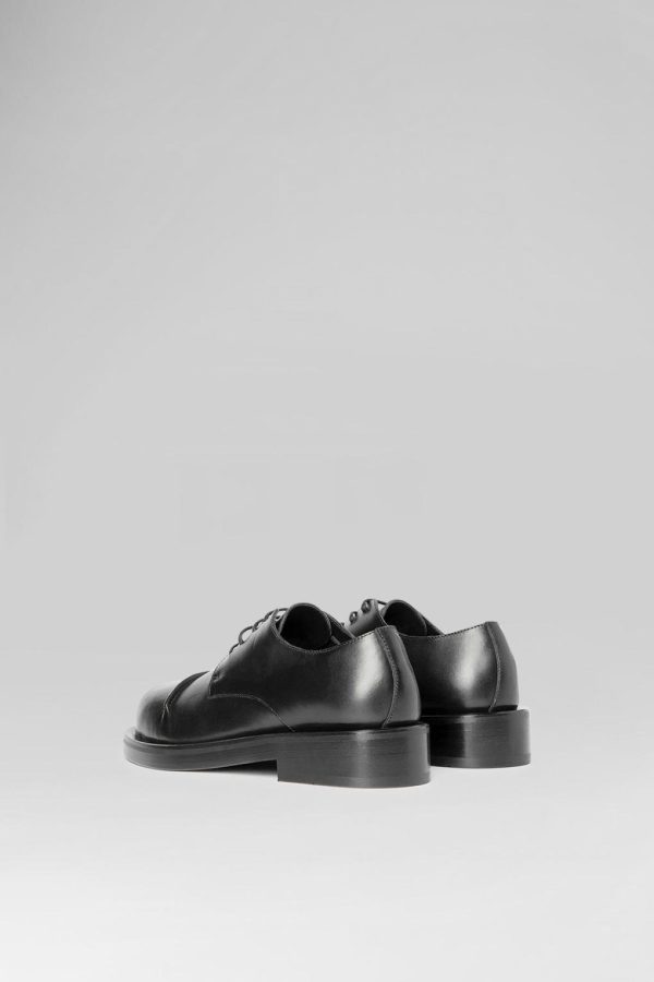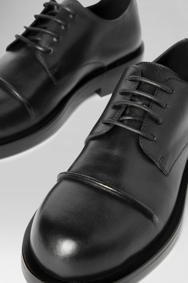 Men’s Sem Derby Shoes – Black – Tuxon Leather – Lace Closure – Front Finn Detail – Leather Sole – Block Heel – 100% Bovine Leather – Made In Italy.