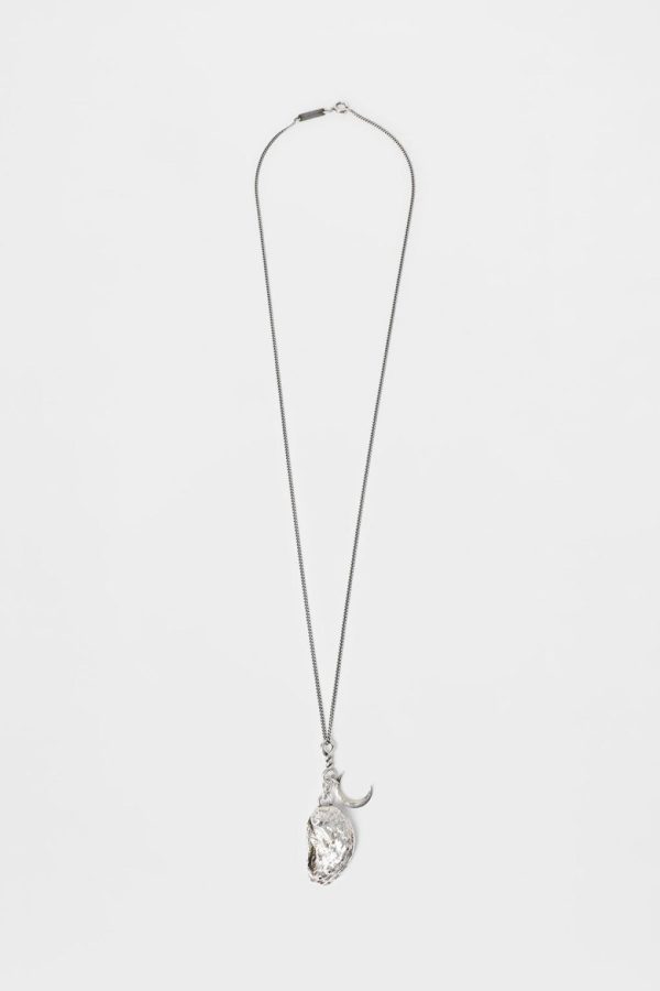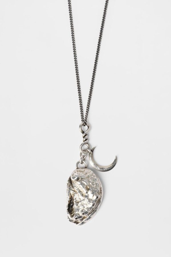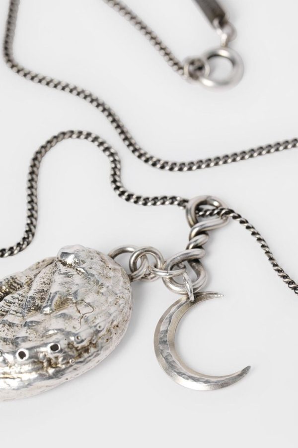 Tordar Necklace with Shell Pendant – Antique Silver – Link Chain – Clasp Closure -E ngraved Logo Plaque – Silver Shell And Half Moon Pendant – 100% Silver – Made in Italy