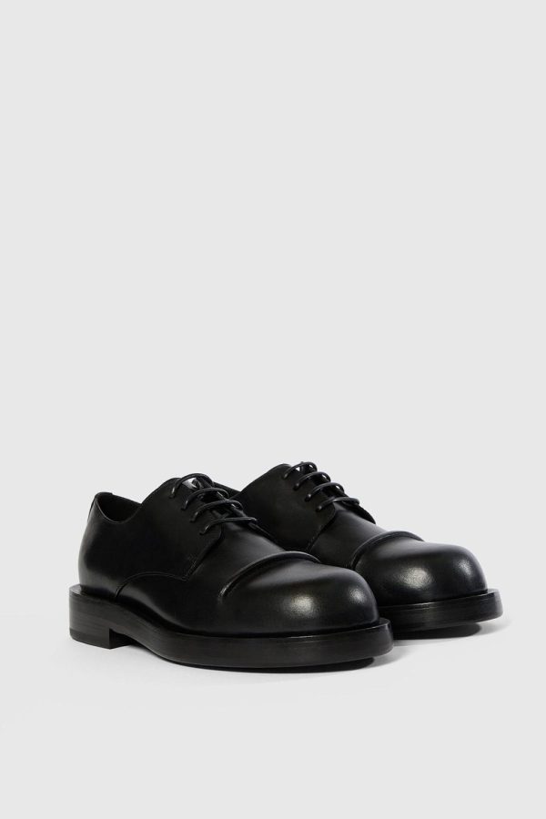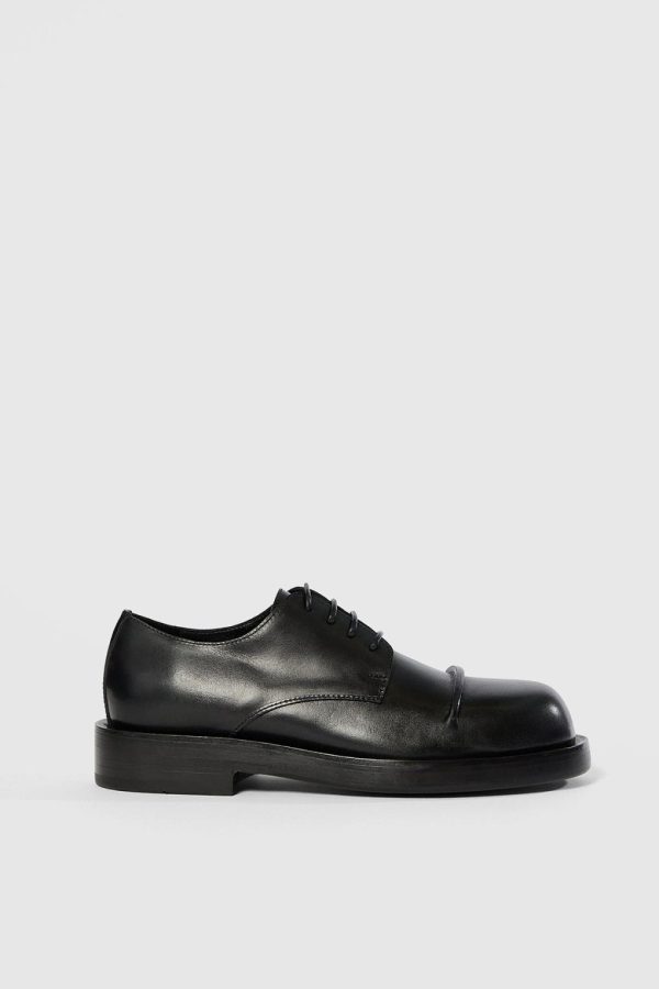 Ann Demeulemeester shoes embody the essence of luxury and comfort. The generously wide fit is a design choice aimed at ensuring a comfortable wear. For those who prefer a snugger fit, we recommend using an insole. Crafted from the highest quality leather, it is natural for the shoes to feel stiff initially. By wearing and walking in them, they will perfectly mold to the shape of your feet, offering unparalleled comfort.