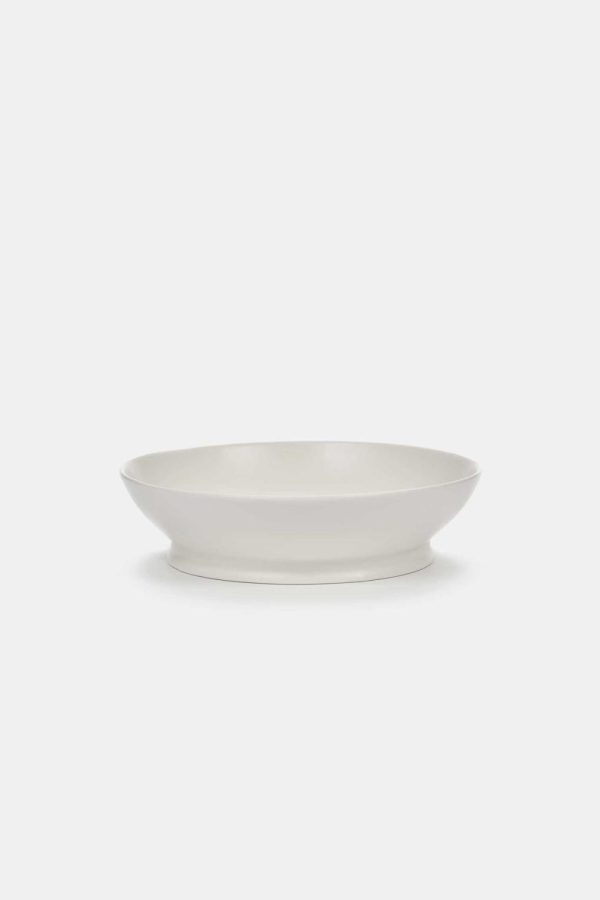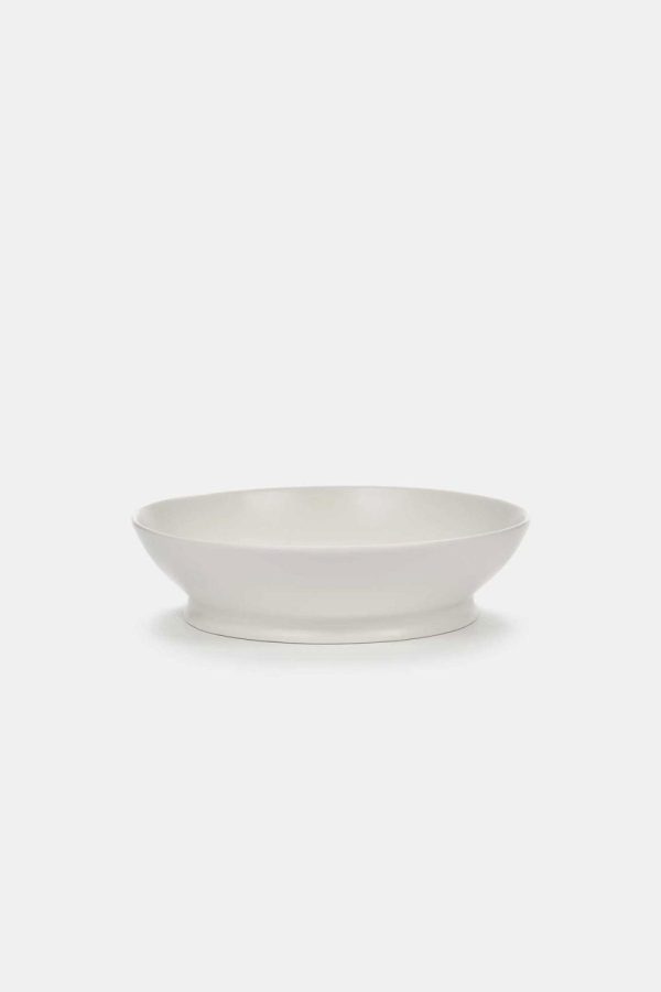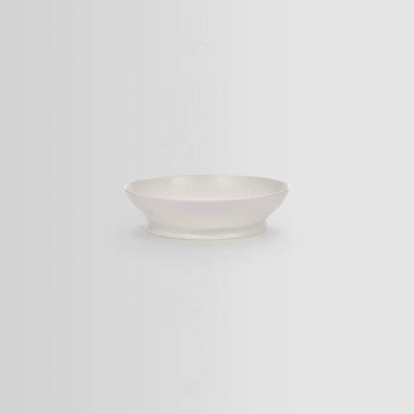 The fine Ra plates sit on a pedestal, so they literally elevate the food served on them. The cups and bowls were given a straight base to make them follow the same sculptural expression.