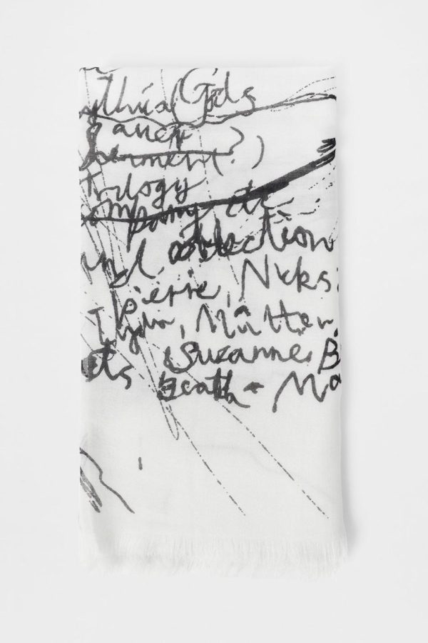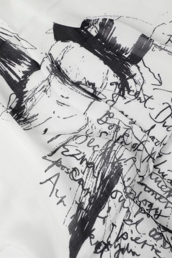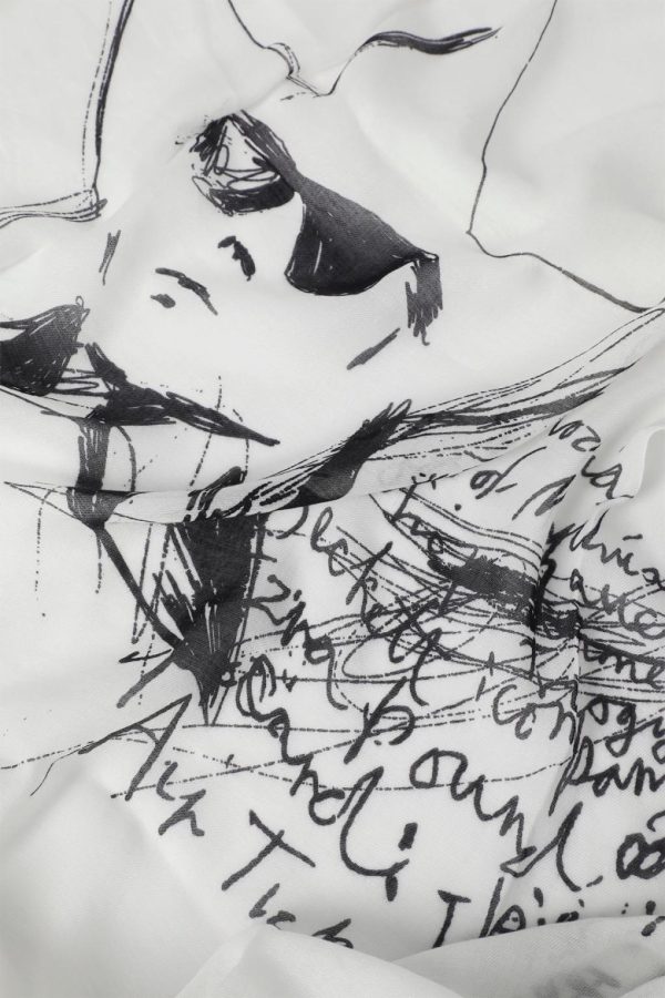 Vesta Printed Scarf – Natural White – Modal, Cotton And Cashmere Canvas – Sketchbook Print – Fringed Ends – 51% Modal 43% Cotton 6% Cashmere – Made in Italy