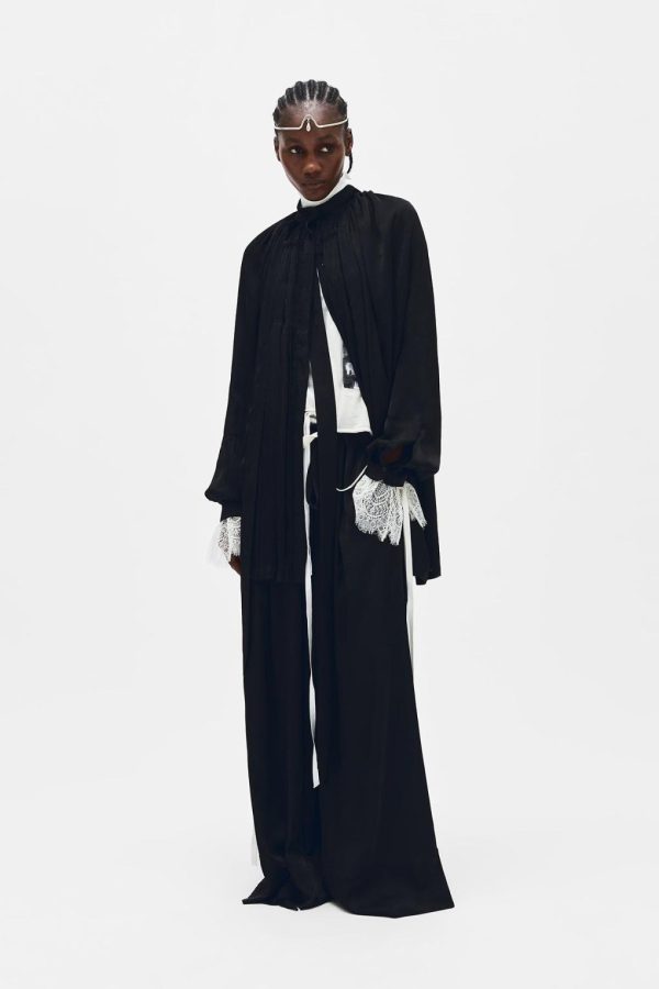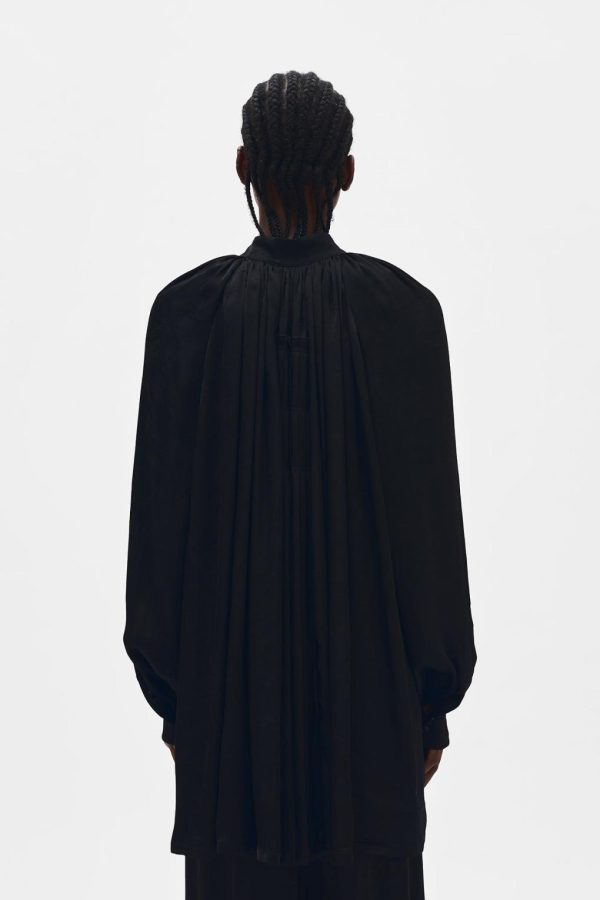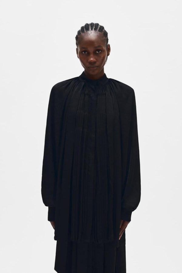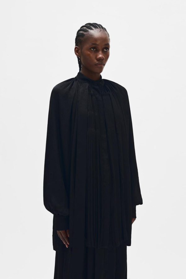 Likki Comfort Pleated Shirt With Detachable Foulard – Black – Ramage Jacquard -79% Viscose 21% Silk – Made in Italy