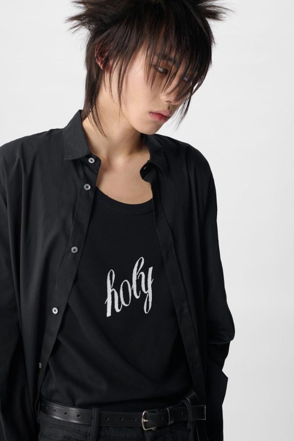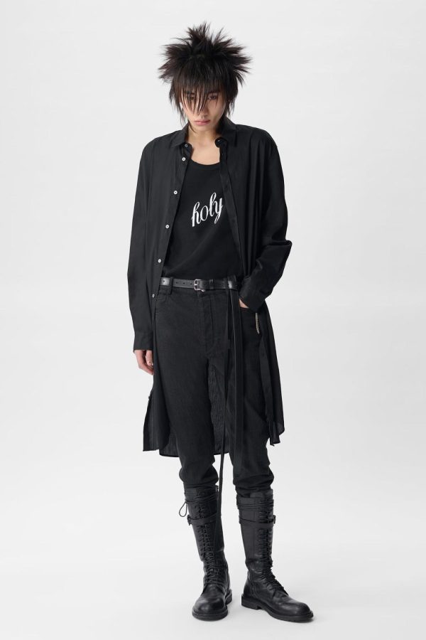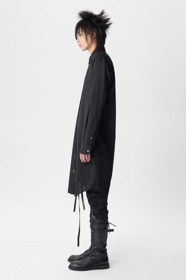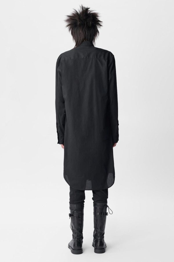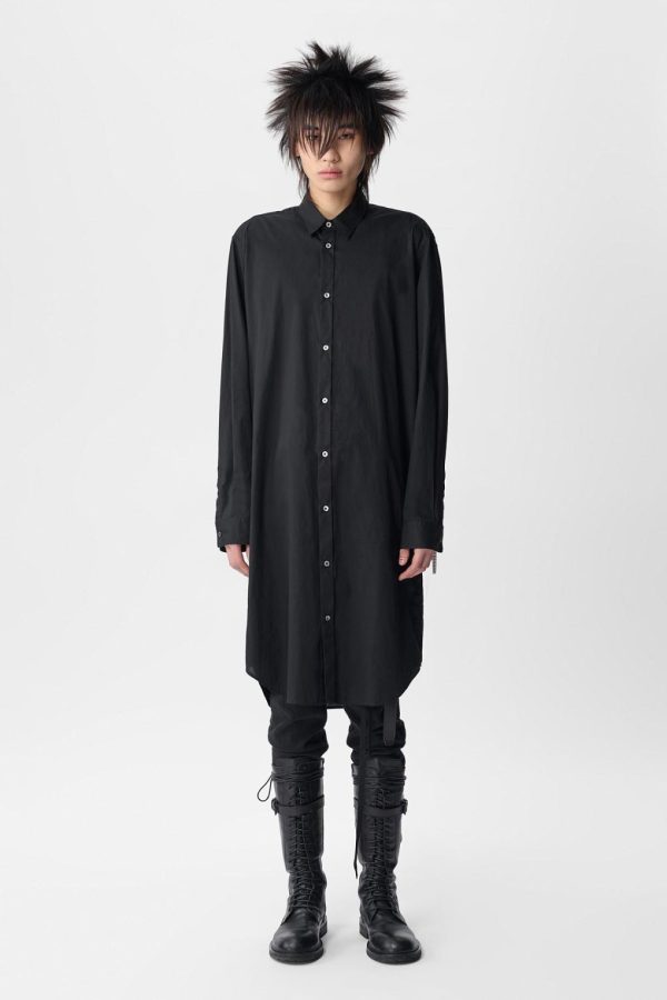 Maurice Long Shirt in Cotton Muslin – Black – Cotton Muslin – Classic Collar -Buttton Closure – Long Sleeves – Buttoned Cuffs – Elongated Hem – 100% Cotton – Made in Italy