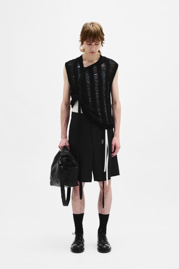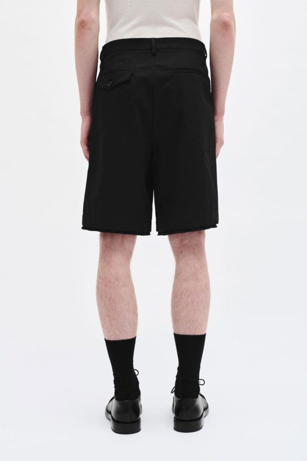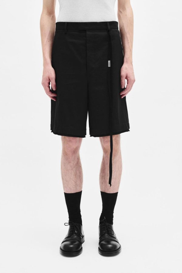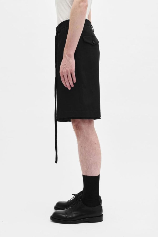 Oberg Raw-Edge Shorts – Black – Cotton Gabardine – Belt Holes – Removable Signature Grosgrain Drawstrings – Hook And Zip Closure – Side Pockets – Layered Raw-Edge Hems – Asymmetric Back Pockets – Straight Leg – 100% Cotton – Made in Italy