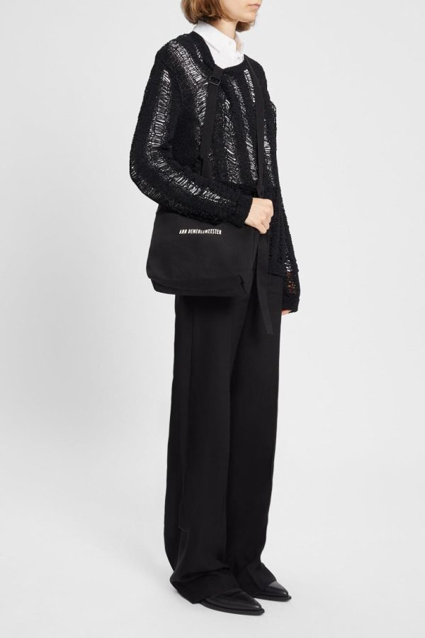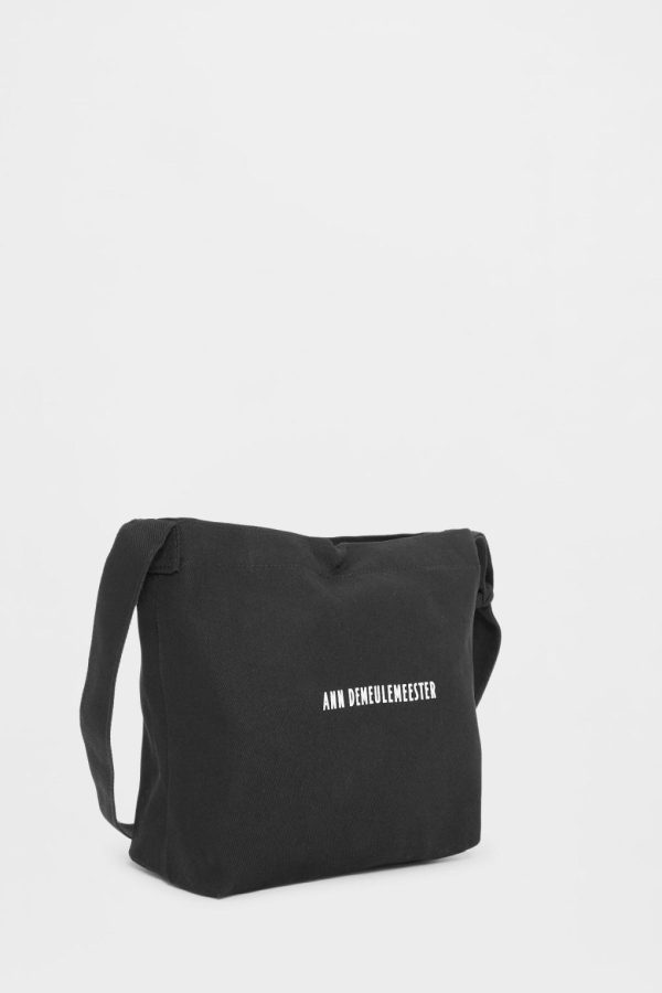 AD Small Shoulder Bag – Black – Heavy Cotton Canvas – Front Embroidered Logo – Knotted Shoulder Strap – Magnetic Press Stud Closure – 100% Cotton – Made in Italy