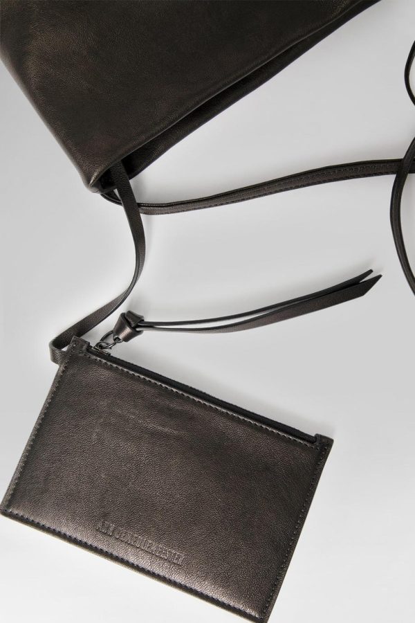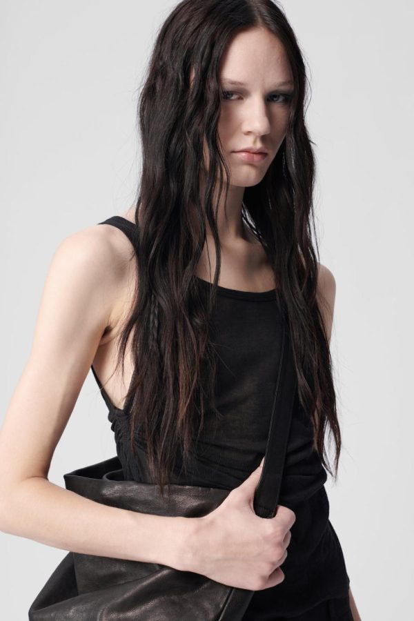 Ger Mini Soft Shoulder Bag – Black – Smooth Grained Sheepskin – Shoulder Strap – Internal Logo Pouch – Shoulder Strap Adjustable -100% Sheepskin – Made In Italy.