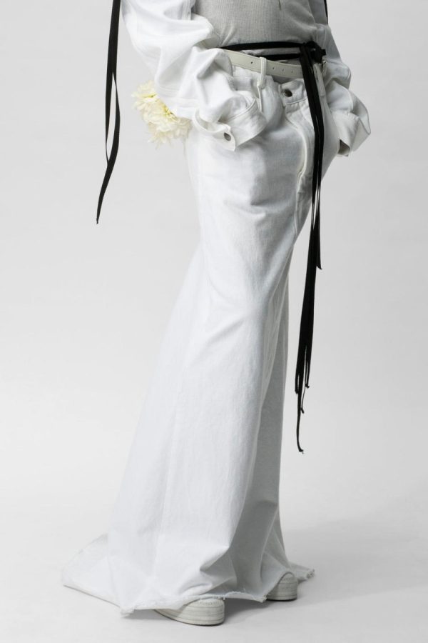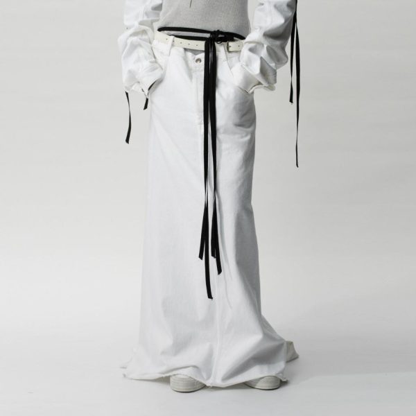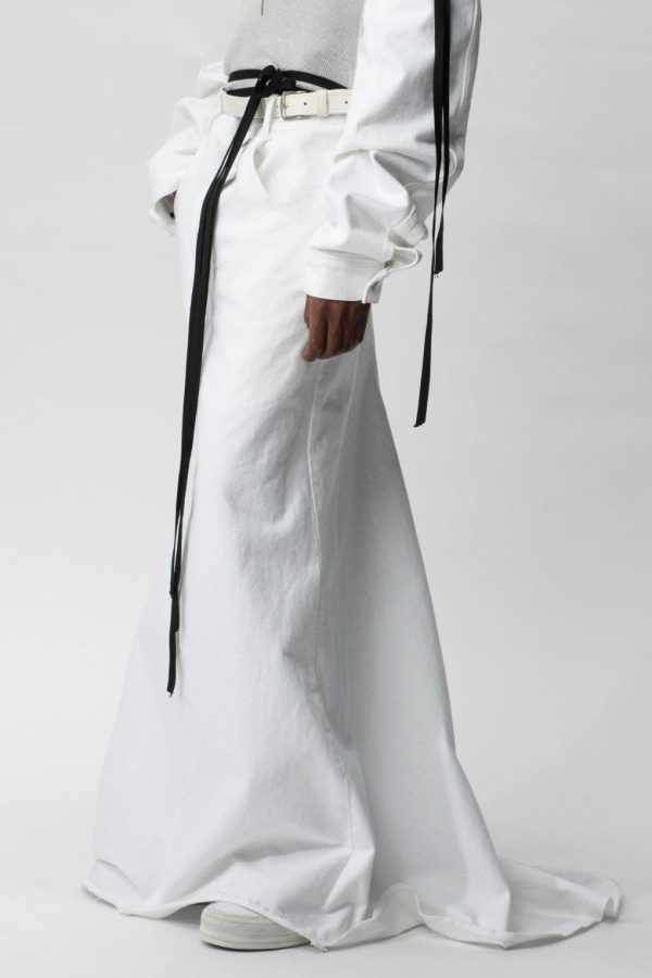 Women’s white Goele five pockets comfort skirt-Denim white-Regular Fit-Laces closure detail-100% Cotton-Made in Italy