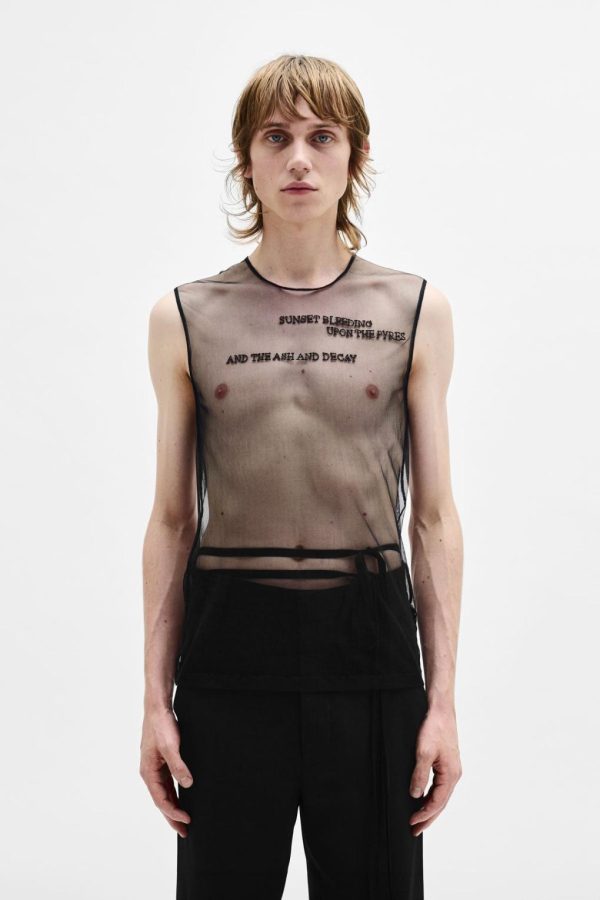 Ann Demeulemeester T-Shirts | Ysewijn ”Sunset Bleeding” Tulle Top Men