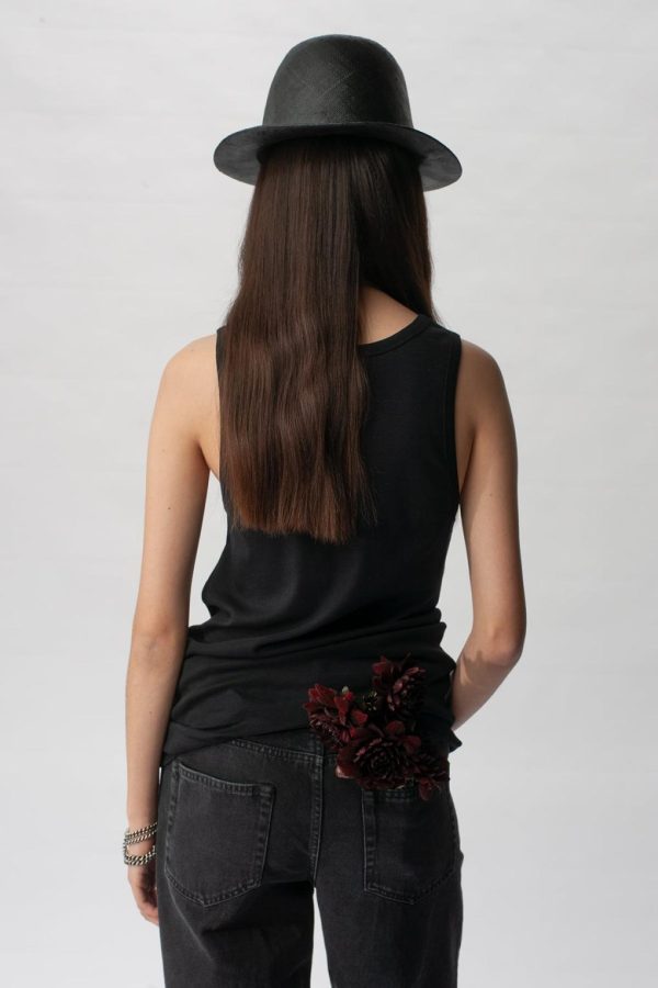 Women’s black Seva tank top-Black-Regular Fit-Black ribbon detail-100% Cotton-Made in Portugal