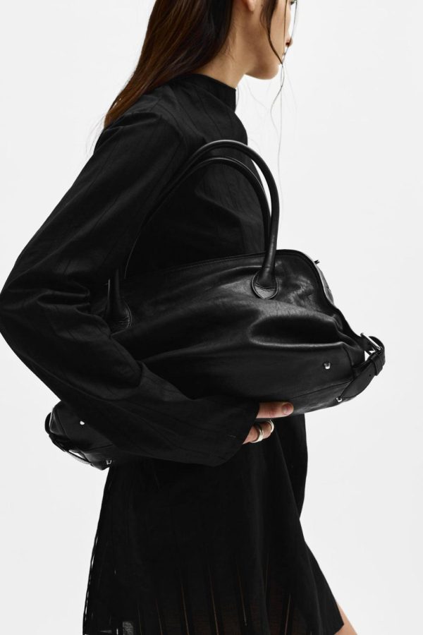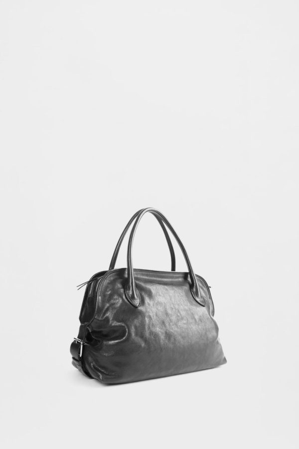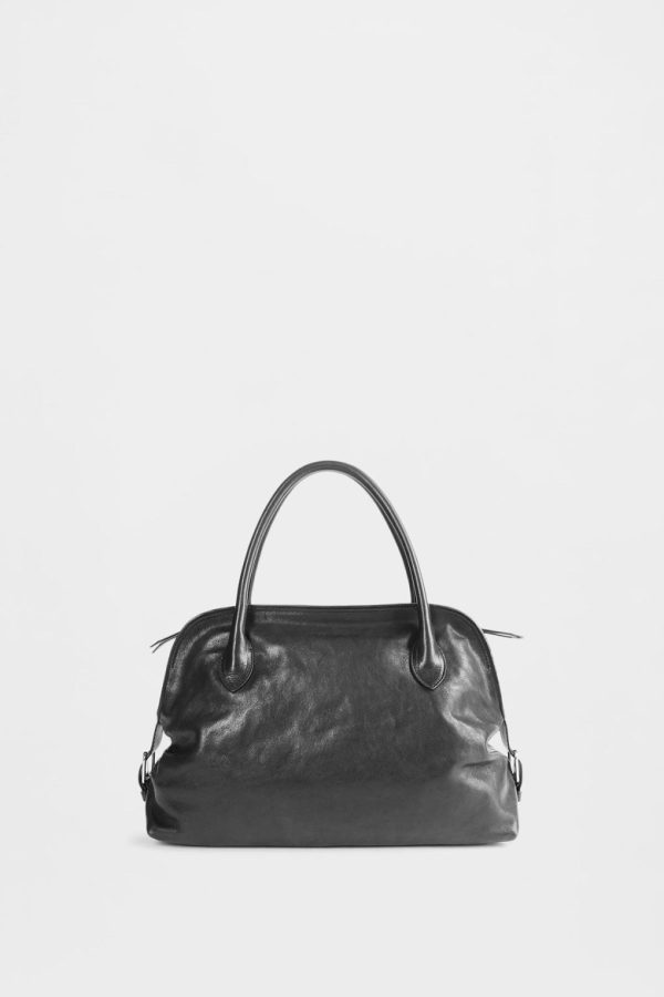 Josse Medium Hand Bag – Black – Vintage Lux Grained Leather – Front Embossed Logo – Top Handles – Zip Closure – 100% Lamb Leather – Made in Italy