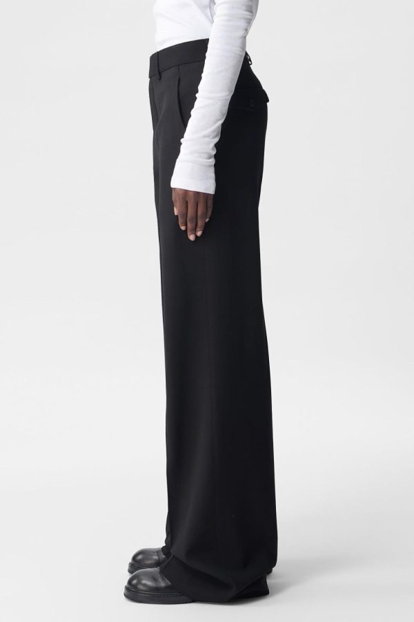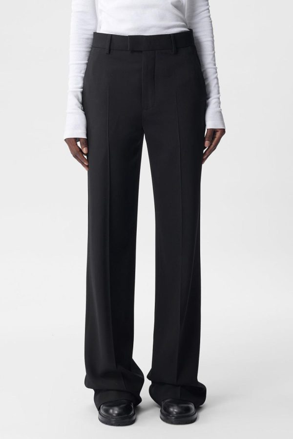 Maaike Flared Comfort Trousers in Viscose Twill – Black – Viscose Twill – Belt Holes – Hook and Zip Closure – Side Pockets – Asymmetric Back Pockets – Flared Leg – Comfort Fit – 71% Viscose – 29% Virgin Wool – Made in Italy