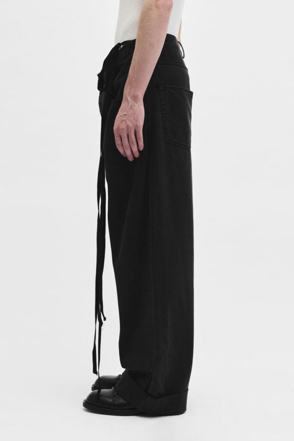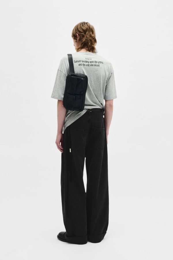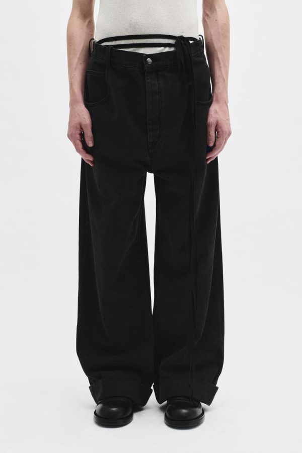 Michael 5 Pocket High Comfort Trousers – Grey- Denim – Belt Holes – Removable Signature Grosgrain Ribbon – Button Closure – 5 Pockets – Wide Leg – Baggy Fit – Floor Length – 100% Cotton – Made in Italy