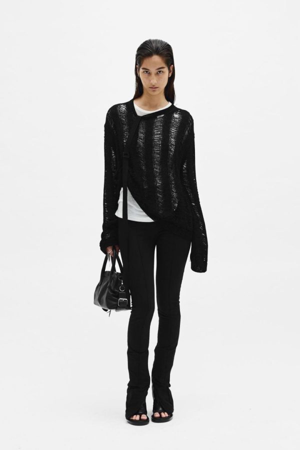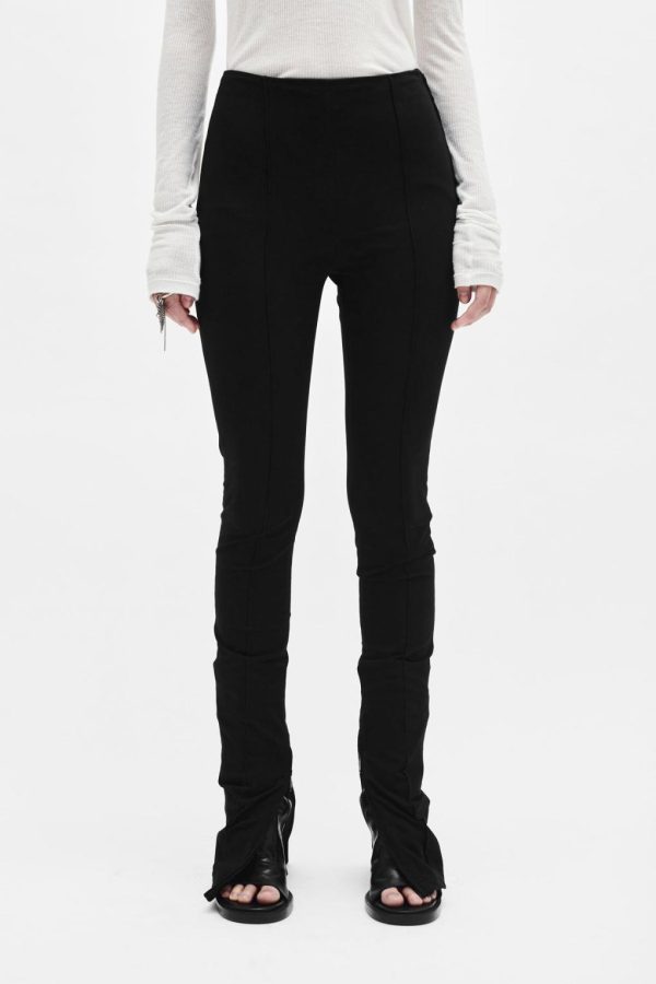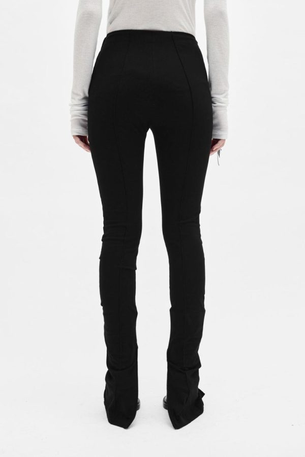 Signe Leggings – Black – Bi-Stretch Cotton Jersey – Elastic Waistband – Hem Splits – Flared Fit – Floor length – 93% Cotton – 7% Elastan – Made in Italy
