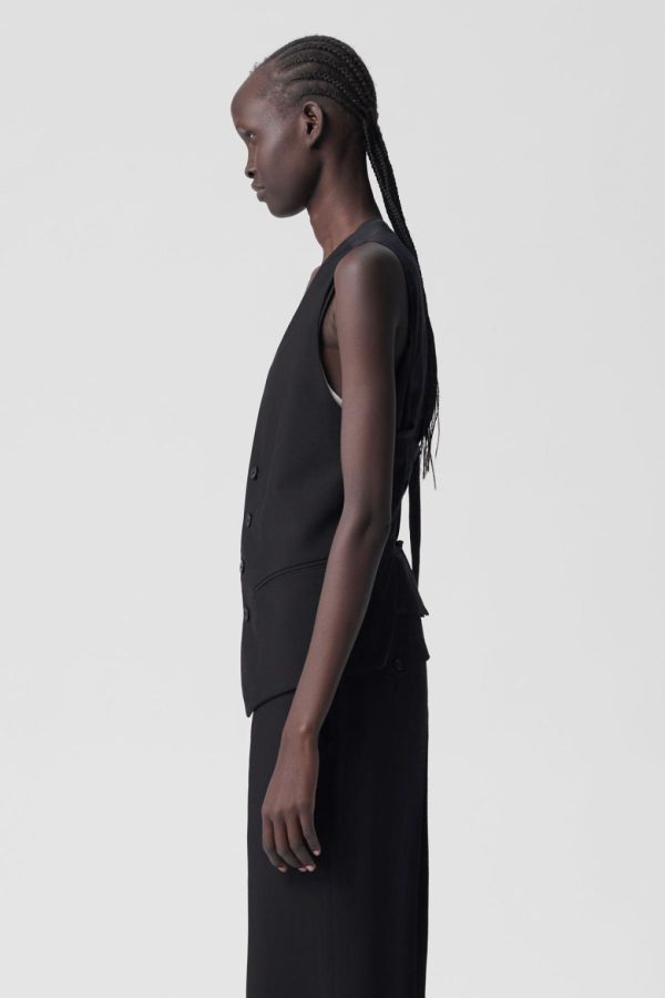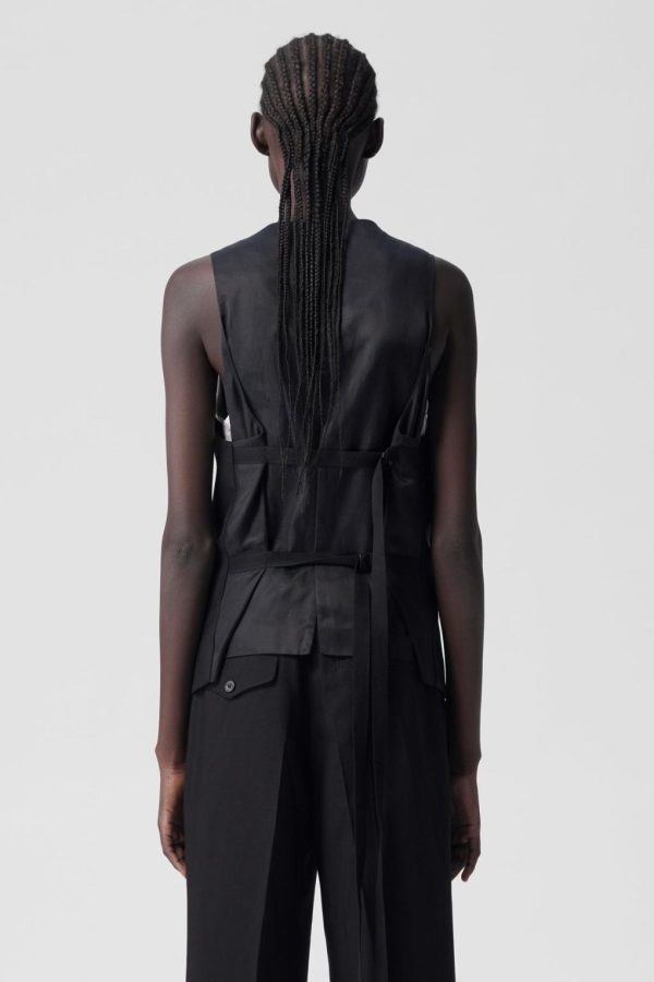 Women’s Charlotte Classic Waistcoat – Black – V-Neck – Button Closure – Side Pockets – Sleeveless – Regular Fit 100% Cotton – Made In Italy.