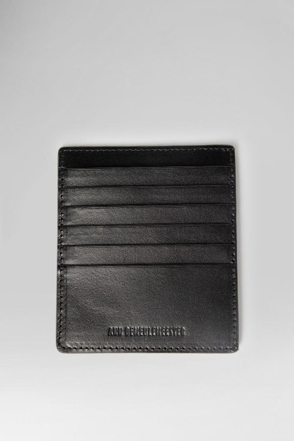 Squared Card Holder – Black – Oily Calfskin – Front Embossed Logo – 6 Card Slots -100% Calf Leather – Made in Italy.
